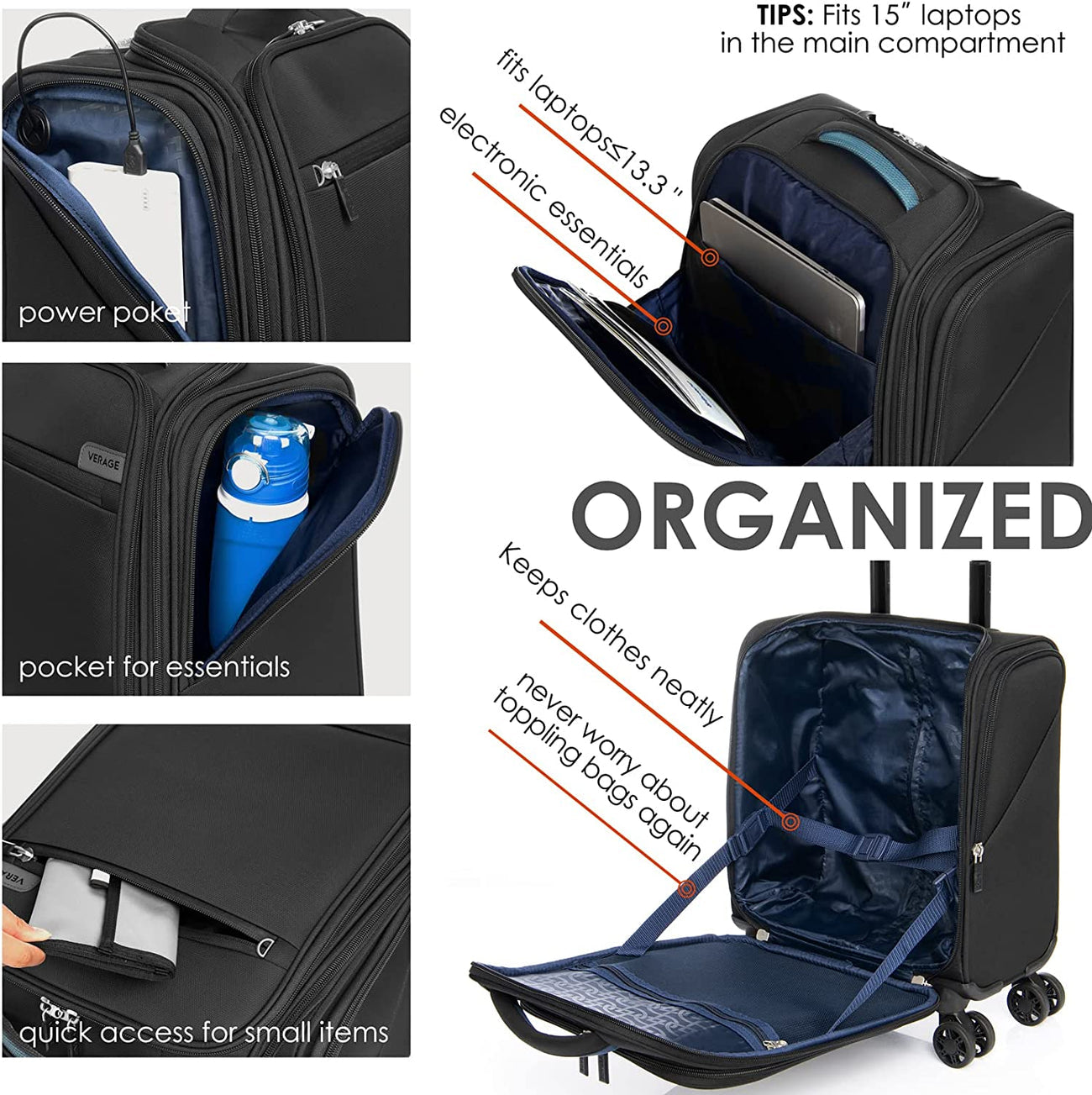 טרולי יוקרתי קטן 14.5" UNDERSEAT מתחת למושב המטוס הכולל USB מבית VERAGE דגם VISIONARY III