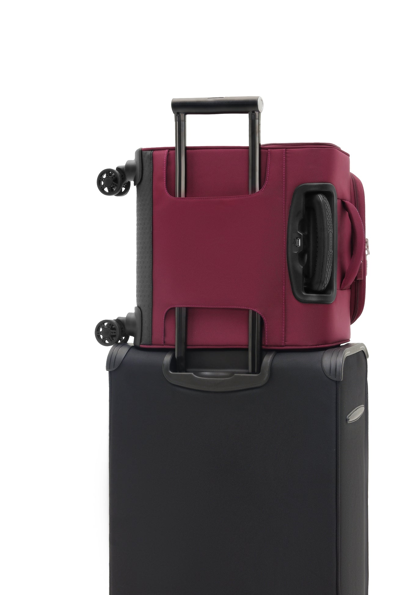 • שרוול אחורי להלבשת המזוודה על ידית טרולי של מזוודה גדולה יותר