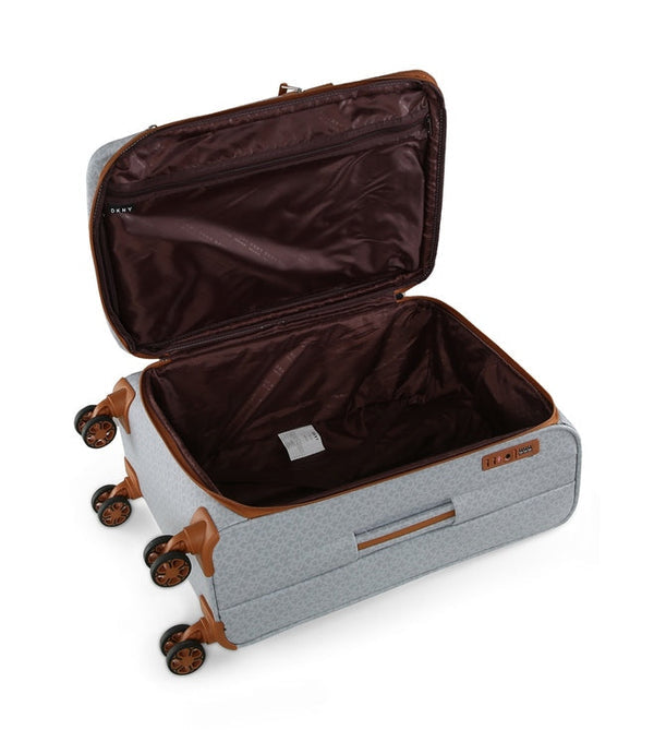 סט מזוודות בד קלות ומעוצבות SIGNATURE 636 מבית האופנה דונה קארן ניו יורק DKNY מזוודות נוחות עשויות בד איכותי ונגד מים, גלגלי סיליקון, מנעול TSA מובנה ורוכסן הרחבה בכל שלושת המזוודות. למי שמחפש מזוודות בעיצוב נוטף סטייל ובנוסף פרקטי ונוח