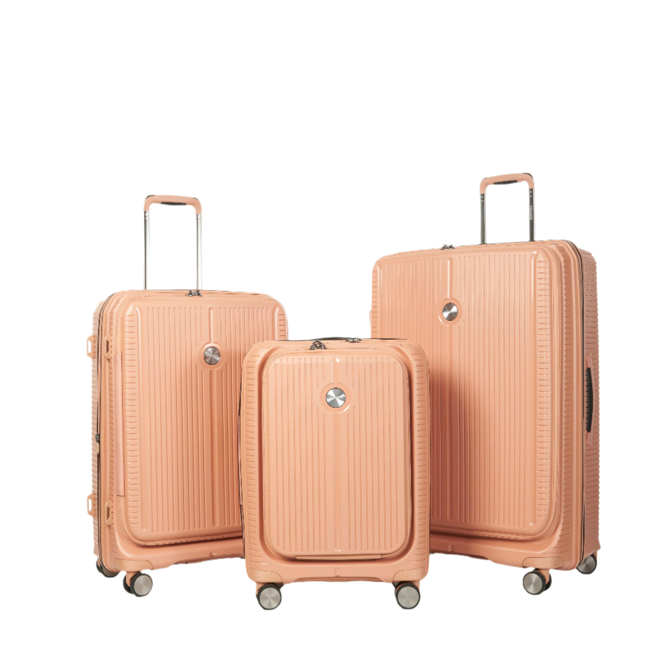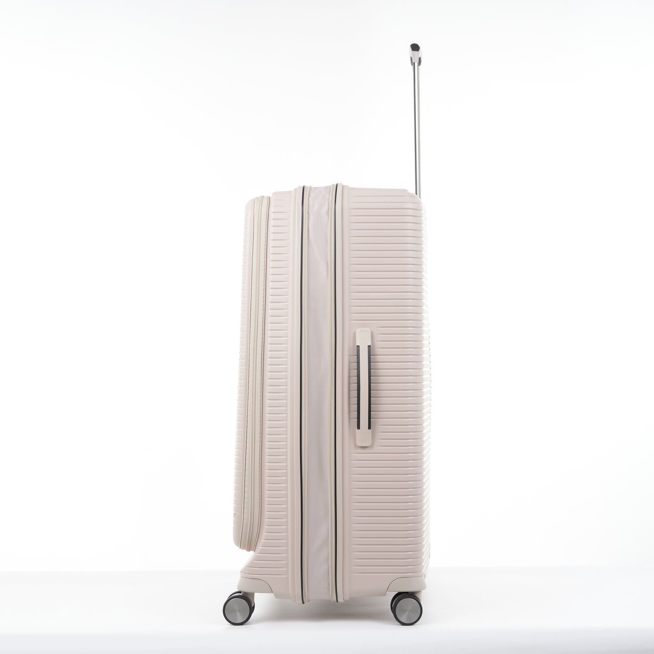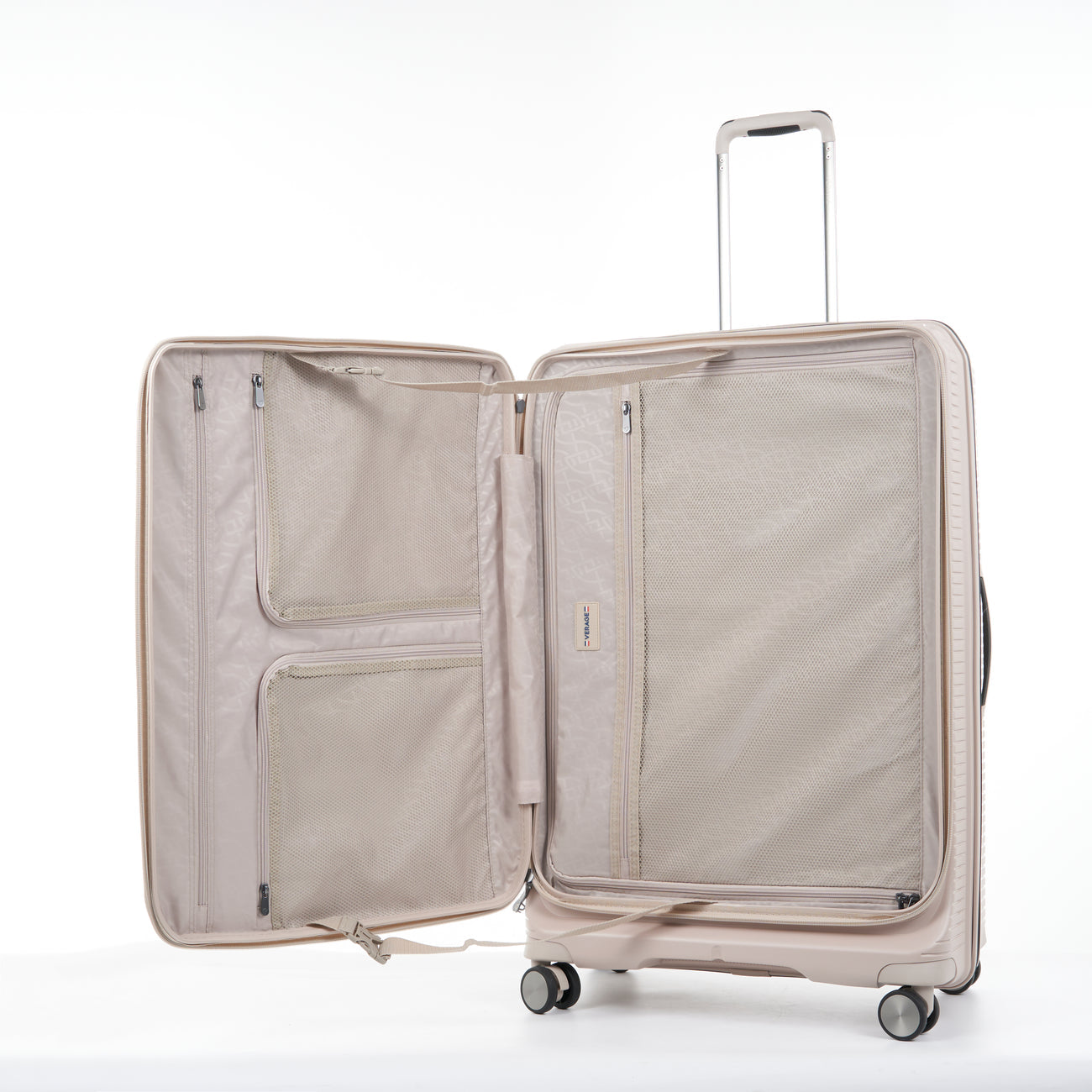 פטנט ייחודי לפתיחת המזוודות הגדולה והבינונית כמו במזוודות בד, תא גדול ומכיל וארגונייזר עם כיסים מרובים הנסגרים ברוכסנים בתא הסגירה