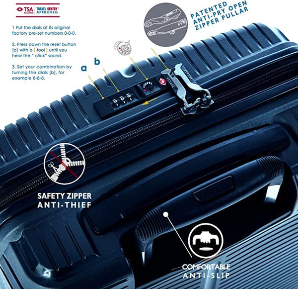 • מנעול קומבינציה + TSA מובנה למזוודה לנעילת הרוכסנים