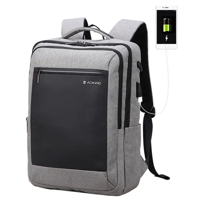 תיק גב דק וקל מאוד עם שקע USB מבית המותג AOKING למחשב נייד 15.6"