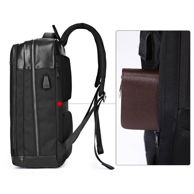 - תא אחורי בגב התיק עם תא נסתר לדרכון ולדברים החשובים המסייע במניעת גניבות עם הגנת RFID נגד גניבת זהות וכרטיסי אשראי