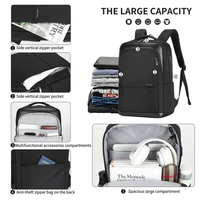 תיק גב עסקי ללפטופ מסדרת הפרימיום מבית המותג AOKING למחשב 15.6" יציאת USB מובנה