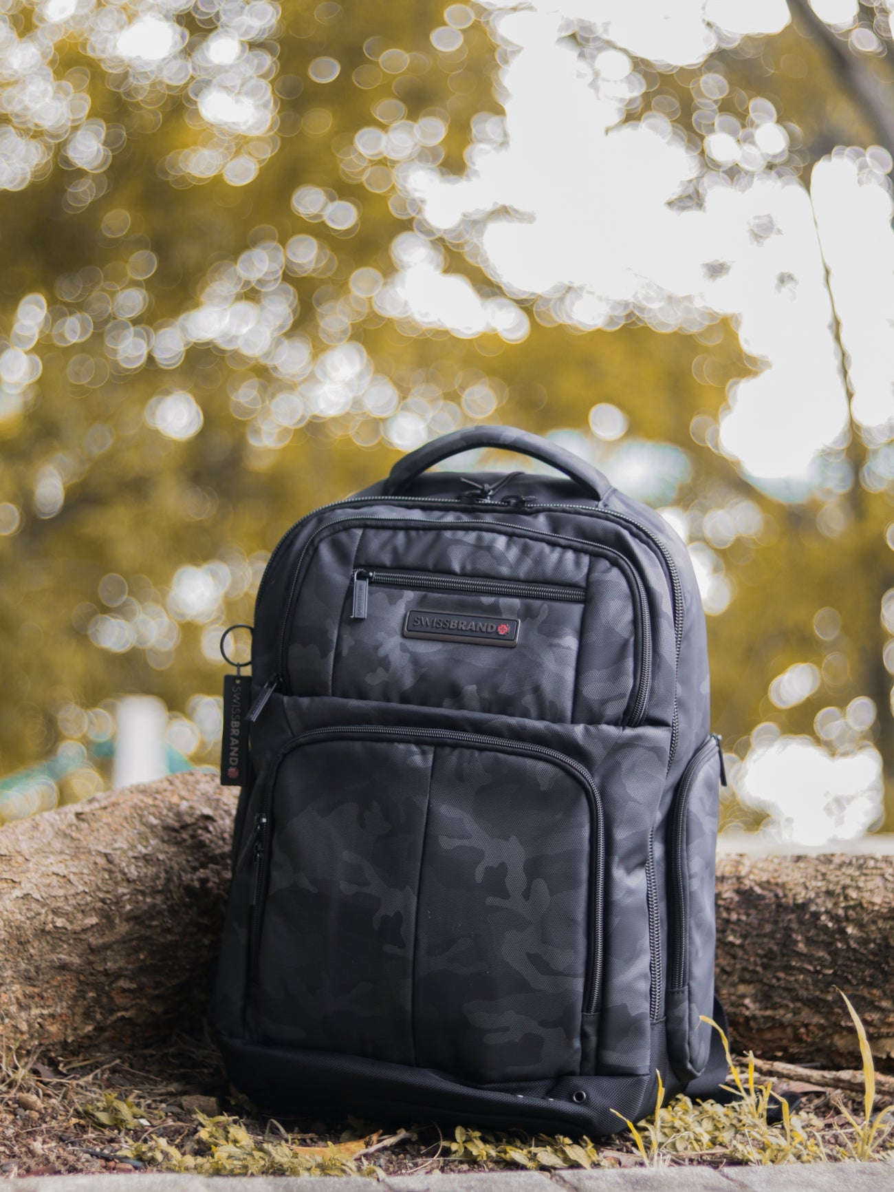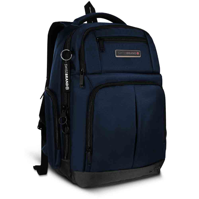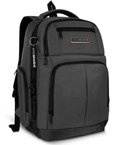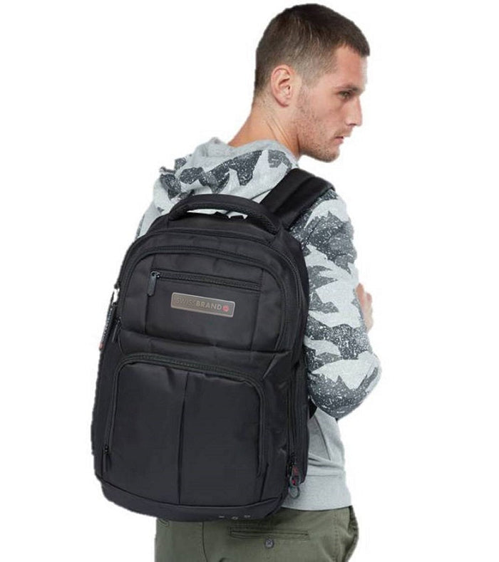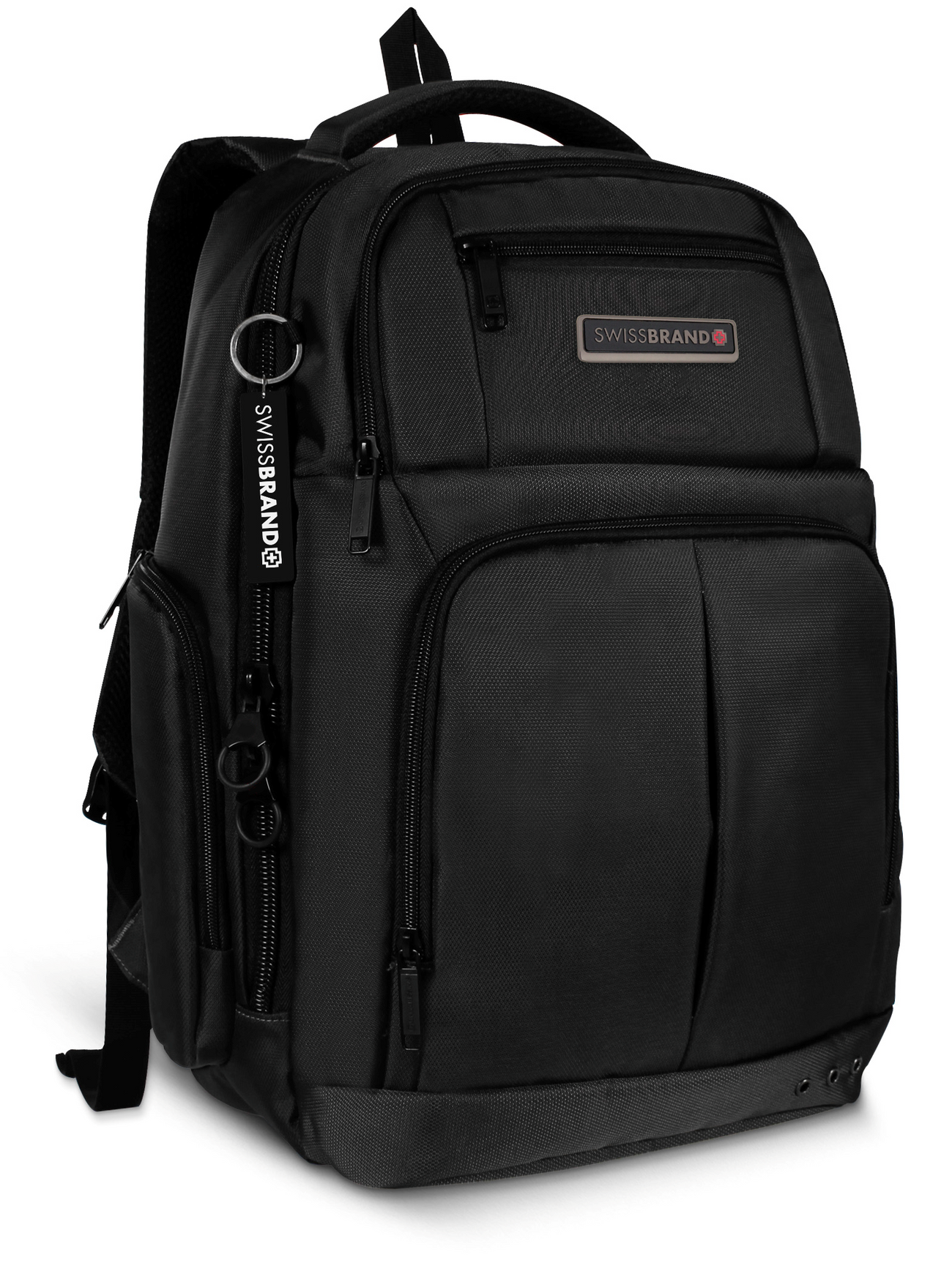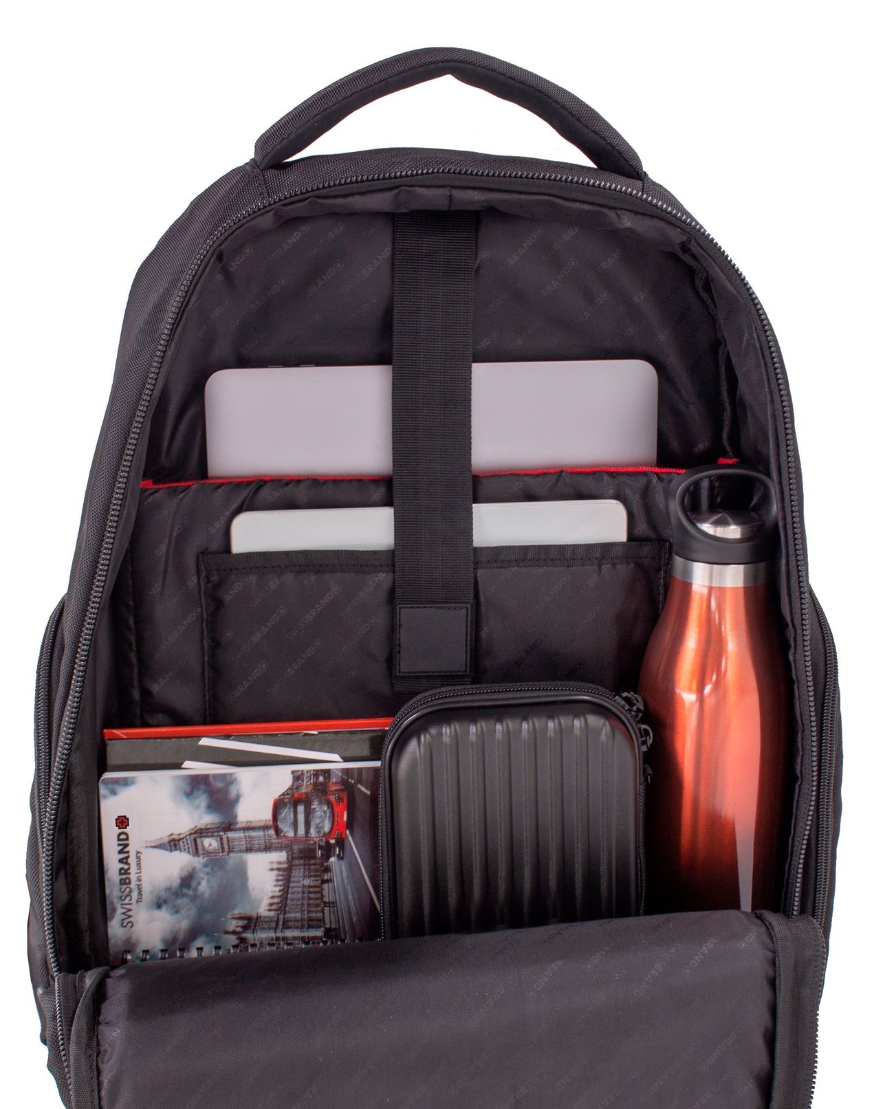 Swissbrand Wembley – תיק גב למחשב נייד של סוויסברנד (מותג שוויצרי איכותי) – תיק מאסיבי וחזק, מרובה תאים, עם גב אורטופדי ותא יעודי מרופד למחשב נייד עד 15.6" + כיס ייעודי לטבלט עד 10" – כולל רצועת הלבשה על ידית מזוודה, נהדר לנסיעות עסקים וכן כתיק גב לסטודנט ולתלמידים.