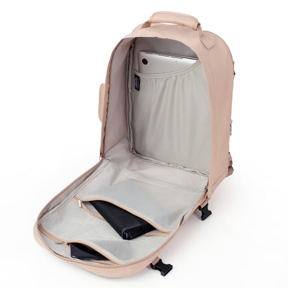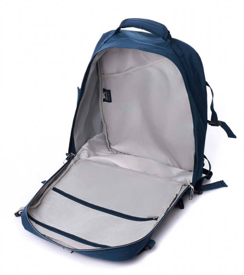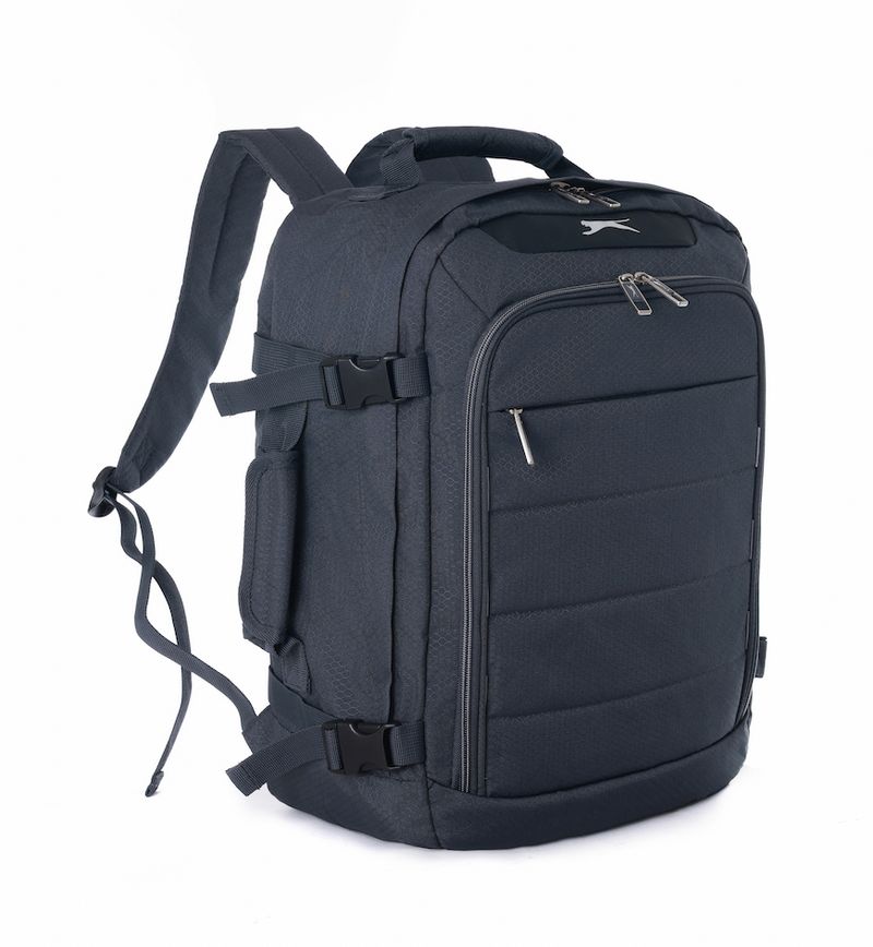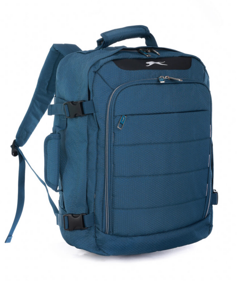 תיק גב עליה למטוס לחברות לואו קוסט במידות 45X31X20 ס"מ בנפח של 36 ליטר עם רוכסן הרחבה להגדלת הנפח ל- 5 ליטר נוספים SLAZENGER קל במיוחד 700 גרם בלבד ! בחירה מצויינת לטיסות עם הגבלת משקל. עשוי פוליאסטר חזק וצפוף דוחה נוזלים, רצועות הידוק בצידי התיק למניעת תזוזה של החפצים ממקומם והקטנת תפיסת המקום של התיק, חלוקה פנימית של תאי רשת ותאים בסגירת רוכסן משניים לארגון מופתי.